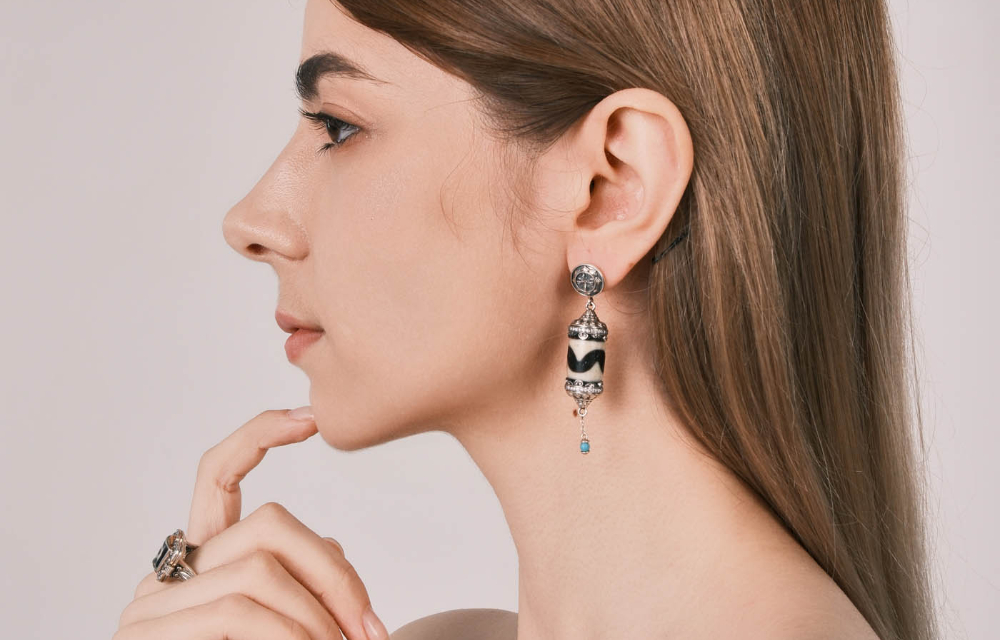 The auspicious vibe from the East is fully unleashed with this pair of Tiger Tooth Dzi Bead Earrings!