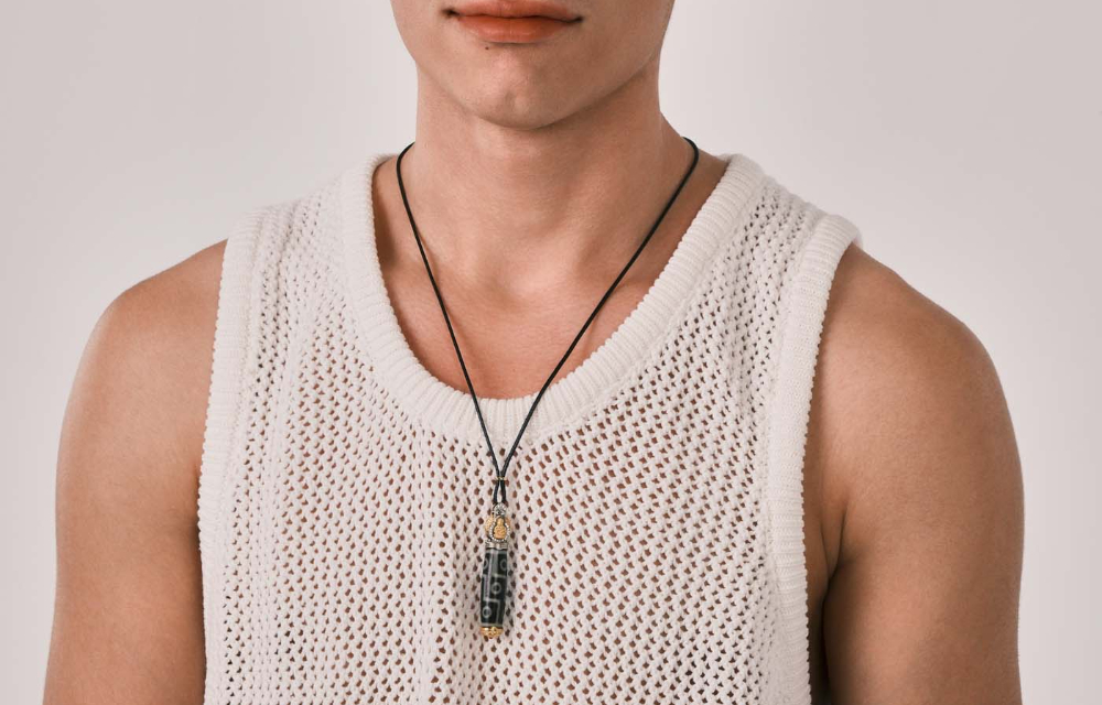 At the core, the 9-eye dzi bead features clear and full patterns, surrounded by sparkling white diamonds and vibrant pumpkin red zircons that radiate luxurious luster in light. On the side of the pendant, two protector deities are exquisitely carved in relief — one safeguards prosperous wealth and abundant resources, while the other enhances romantic fortune and harmonious relationships. The most ingenious design is the spinnable prayer wheel: a gentle rotation signifies the continuous infusion of cosmic energy, dispelling negative vibes and keeping good luck and blessings flowing endlessly.