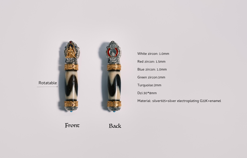 A powerful fusion of sacred Tibetan energy and exquisite craftsmanship! At the top of this pendant, high-precision 3D relief technology brings to life two guardian deities standing back-to-back, with incredibly detailed carvings that exude formidable aura.
