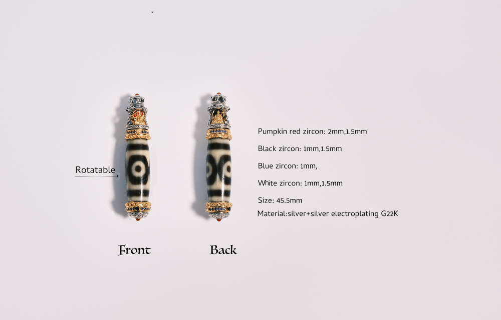 Flanking the architectural design are symmetric abstract representations of the Sun God and Moon God, loyal guardians of cosmic order, radiating a dignified and sacred aura. The most exquisite detail is the rotatable mini three-eye dzi bead, It signifies that under the protection of divine order, the wearer actively cultivates wisdom and blessings, gaining insight into life’s path. More than a high-end accessory to showcase unique taste, it’s a personal token of faith and strength—adding elegance to daily outfits and solemnity to special occasions!